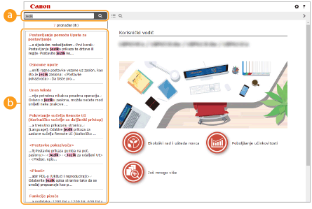 Kliknite da biste prikazali informacije o tome kako pregledati Korisnički vodič, kako pretraživati itd.