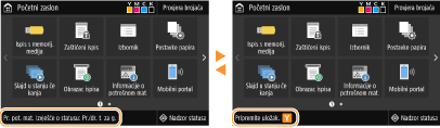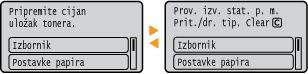 Poruke se prikazuju na zaslonu u situacijama kada ponestaje papira ili kada se dosegne kraj životnog ciklusa spremnika za toner. Dodatne informacije potražite u odjeljku „Otklanjanje poteškoća (FAQ)“ na web-mjestu s elektroničkom verzijom priručnika.