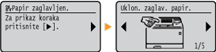 U nekim slučajevima pogreške prikazuju upute o otklanjanju pogreške. Da biste riješili problem, slijedite upute na zaslonu. Zaslon koji se prikazuje pri zaglavljenom papiru prikazan je ispod kao primjer.