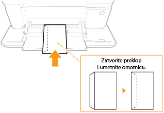 U ovom se odjeljku opisuje umetanje omotnica u željenom usmjerenju, kao i postupci koje je potrebno dovršiti prije umetanja omotnica. Opis općenitog postupka umetanja omotnica u ladicu za papir ili višenamjensku ladicu potražite u odjeljcima Umetanje papira u ladicu za papir ili Umetanje papira u višenamjensku ladicu.