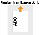 U ovom se odjeljku većim dijelom opisuje umetanje već ispisanog papira s pravilno okrenutom stranom i usmjerenjem. Opis općenitog postupka umetanja papira u ladicu za papir ili višenamjensku ladicu potražite u odjeljcima Umetanje papira u ladicu za papir ili Umetanje papira u višenamjensku ladicu.