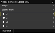 Ako registrirate veličine papira koju često koristite na gumbima od <S1> do <S3>, možete ih odabirati dodirom. Registriranje prilagođene veličine papira