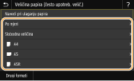 Ako registrirate veličine papira koju često koristite na gumbima od <S1> do <S3>, možete ih odabirati dodirom. Registriranje prilagođene veličine papira