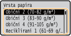 Ako često morate promijeniti papir koji se umeće, postavite na <Slob.>; time ćete smanjiti broj koraka potrebnih za promjenu postavke svakog puta. Međutim, imajte na umu da ova postavka omogućuje da uređaj ispisuje čak i ako postoji nepodudarnost između postavke vrste papira u upravljačkom pogonu pisača i vrste papira koji je umetnut u uređaj.