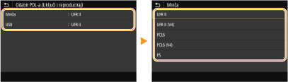 Odaberite želite li ispis na format A4 prebacivati na ispis na format Letter i obratno ako je jedan od tih formata papira umetnut, a drugi nije. Ako odaberete <Uključ.> i definirate ispis papira veličine A4 s računala, no papir te veličine nije umetnut u uređaj, dokument će se ispisati na papiru veličine Letter.