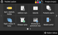 Kada zatvorite Upute za postavljanje, prikazuje se Početni zaslon.