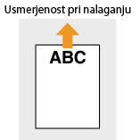 To poglavje v glavnem opisuje nalaganje potiskanega papirja v pravi smeri in postavitvi. Opis splošnega postopka vlaganja papirja v kaseto za papir ali večnamenski podstavek poiščite v Nalaganje papirja v kaseto za papir ali Vlaganje papirja v večnamenski pladenj.