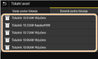 Če je možnost <Prikaz dnevnika poslov> nastavljena na <Izklopi>, si ne morete ogledati dnevnikov tiskanja. <Prikaz dnevnika poslov>
