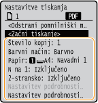 Za datoteko PDF lahko natisnete 9 ali 16 strani slikovnih datotek na eno stran lista papirja tako, da uporabite možnost <N na 1> v razdelku <Nast. podrobn. PDF>.