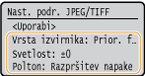 <Svetlost> datotek TIFF lahko nastavite le, ko so stisnjene po standardu JPEG.