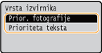 Prednost je dana kakovostnemu natisu fotografij. <Prioriteta teksta>