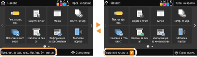 На екрана се показват съобщения в ситуации, като например когато хартията свърши или настъпи краят на експлоатационния живот на тонер касетите. За повече информация вижте „Отстраняване на неизправности (FAQ)“ на уебсайта с онлайн ръководства.