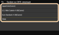 Настройката <Профил на CMYK симулация> е зададена на <Няма>