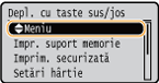 O apăsare lungă pe <Mutare st.> sau pe <Mutare dr.> deplasează butonul selectat continuu.