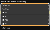 Dacă înregistraţi formatul de hârtie pe care îl utilizaţi frecvent pe butoanele <S1> – <S3>, puteţi să le apelaţi cu o singură atingere. Înregistrarea unui format de hârtie personalizat