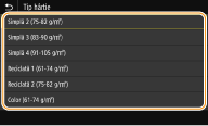 Dacă ecranul afişat mai sus nu este afişat când încărcaţi hârtieDacă încărcaţi mereu aceeaşi hârtie în tava universală, puteţi sări peste setarea pentru hârtie dacă înregistraţi dimensiunea şi tipul hârtiei ca setare implicită. Când setarea implicită este înregistrată, totuşi, ecranul de mai sus nu este afişat. Pentru a afişa ecranul, selectaţi <Specificare la încărcarea hârtiei> (Înregistrarea setărilor implicite de hârtie pentru tava multifuncţională).