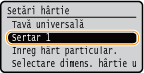Dacă înregistraţi formatul de hârtie pe care îl utilizaţi frecvent pe butoanele <S1> – <S3>, puteţi să le apelaţi cu o singură atingere. Înregistrarea unui format de hârtie personalizat