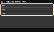 Pentru LBP664Cx / LBP663CdwEfectul de îmbunătăţire este mai puternic cu <Mod 2> decât cu <Mod 1>. Încercaţi ajustarea începând cu <Mod 1>.