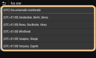 Setaţi <Fus orar> înainte de a seta data şi ora curente. Dacă setarea <Fus orar> este modificată ulterior, data şi ora curente sunt, de asemenea, modificate corespunzător.