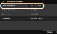 Ethernet este un standard pentru comunicarea informaţiilor într-o reţea locală (LAN). Puteţi seta modul de comunicare şi tipul de Ethernet. În general, aparatul poate fi folosit fără a modifica setările implicite (<Setări driver Ethernet>), dar puteţi modifica aceste setări pentru a se potrivi reţelei folosite.