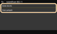 Când vă conectaţi la o reţea LAN wireless, aparatul întâmpină o eroare de autentificare dacă autentificarea cheii partajate este setată la routerul wireless. Dacă se întâmplă acest lucru, aparatul schimbă automat setarea în <Cheie partajată> şi încearcă din nou conectarea.