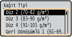 Yüklenen kağıdı sıklıkla değiştirmeniz gerekiyorsa, <Serbest> olarak ayarlamak ayarın değiştirilmesi için her seferinde gereken adım sayısını azaltır. Ancak, yazıcı sürücüsündeki kağıt türü ayarı ile makineye gerçekte yüklenen kağıt türü aynı olmasa bile, bu ayar seçiliyken makinenin yazdırmaya devam edeceğini unutmayın.