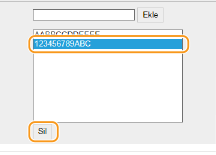 Bir MAC adresi seçin ve [Sil] öğesini tıklatın.