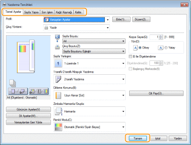 Bu makine için yazıcı sürücüsünü seçin ve [Tercihler] veya [Özellikler] öğesine tıklayın.