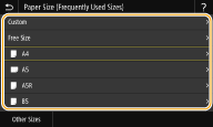 אם תרשום את גודל הנייר שבו אתה משתמש לעתים תכופות בלחצנים <S1> עד <S3>, תוכל להגדיר את הגדלים בנגיעה אחת. רישום גודל נייר מותאם אישית