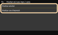 Seleccioneu si s'ha de canviar entre la impressió en paper de mida A4 i Carta si s'ha carregat paper d'una d'aquestes mides però no de l'altra. En seleccionar <Activat>, si especifiqueu un paper de mida A4 per imprimir des de l'ordinador, però el paper de mida A4 no està carregat a l'equip, el document s'imprimeix en paper de mida Carta.