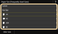 Якщо необхідно часто змінювати папір для завантаження, виберіть параметр <Free Size>; це зменшить кількість кроків, які необхідно виконати під час кожної зміни. Якщо встановлений у драйвері принтера параметр дуже відрізняється від формату паперу, що завантажується, можна відображати повідомлення про помилку.