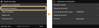 Puede cambiar diversas opciones relacionadas con la pantalla, como el idioma: <Opciones de visualización> Puede cambiar la pantalla que aparece automáticamente cuando el equipo permanece inactivo durante un periodo de tiempo especificado: <Función tras reinicio auto> Puede cambiar diversas opciones relacionadas con la accesibilidad, como la velocidad del desplazamiento: <Accesibilidad> |