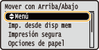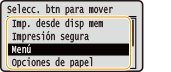 Una pulsación larga sobre <Mover izq.> o <Mover der.> hace que el botón seleccionado se desplace de forma continua.