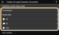 Si no aparece el tamaño de papel cargado, seleccione <Otros tamaños>.