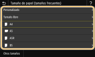 Si no aparece el tamaño de papel cargado, seleccione <Otros tamaños>.