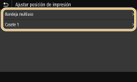 Si un documento se imprime descentrado con respecto al rango de impresión, ajuste la posición de impresión. Puede ajustar la posición de impresión de cada origen del papel. Puede ajustar la posición de impresión en el rango de -5,0 mm a +5,0 mm en incrementos de 0,1 mm.