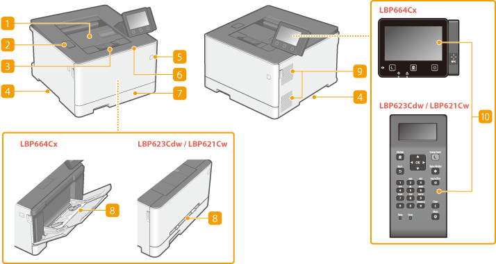 แผงควบคุมการทำงานประกอบด้วยปุ่มต่างๆ เช่น ปุ่ม บ้าน ปุ่มหยุด จอแสดงผล และไฟแสดงสถานะ คุณสามารถดำเนินการทั้งหมดและระบุการตั้งค่าได้จากแผงควบคุมการทำงาน