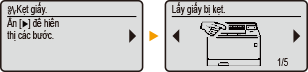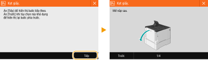 Trong một số trường hợp khi có lỗi xảy ra, hướng dẫn cách xử lý lỗi sẽ được hiển thị. Làm theo hướng dẫn trên màn hình để xử lý lỗi. Màn hình hiển thị khi xảy ra lỗi kẹt giấy được trình bày dưới đây là một ví dụ.