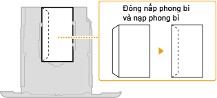 Phần này mô tả cách nạp phong bì theo hướng bạn muốn, cũng như những quy trình bạn cần phải hoàn thành trước khi nạp phong bì. Để biết thêm các chi tiết về quy trình nạp phong bì chung vào ngăn giấy hoặc khay giấy đa năng, vui lòng xem Nạp Giấy vào Ngăn Giấy hoặc Nạp giấy trên khay giấy đa năng. |