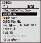 Đối với tập tin PDF, bạn có thể in 9 hoặc 16 trang dữ liệu hình ảnh trên một mặt của tờ giấy bằng cách sử dụng <N trên 1> bên dưới <Đặt Chi Tiết PDF>. |