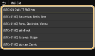 Cài <Múi Giờ> trước khi cài đặt ngày và giờ hiện tại. Nếu cài đặt <Múi Giờ> bị thay đổi sau đó, thì ngày và giờ hiện tại cũng sẽ bị thay đổi theo. |