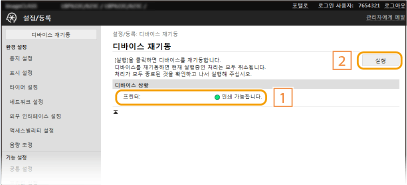 [디바이스 상황]에서 처리 중인 기능이 없는지 확인하고 [실행]을 클릭합니다.