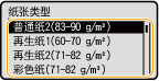 如果您经常需要更换装入的纸张,请设为 <任意>;这样可以减少每次更改设置所需的步骤。但请注意,即使打印机驱动程序中的纸张类型设置和实际装入本机的纸张类型不符,此设置也会让本机执行打印。
