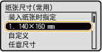 在纸张尺寸选择画面上为纸盒或多功能托盘选择 <自定义> 时,可以调用在上述步骤中注册的纸张尺寸。