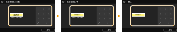 设置系统管理员账户 -“系统管理员识别码”。也可为系统管理员识别码设置一个 PIN。如果指定了系统管理员识别码,只有当输入了正确的系统管理员识别码和 PIN 时,才能访问需要管理员权限的项目,例如 <网络> 和 <管理设置>。系统管理员识别码设置信息对于本机的安全至关重要,因此请确保只有管理员知道系统管理员识别码和 PIN。