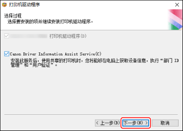 [Canon Driver Information Assist Service]:在您想要在打印服务器环境中获取设备信息时选择该选项。