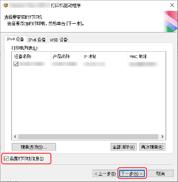 安装驱动程序时您可以在 TCP/IP 网络上搜索设备。
