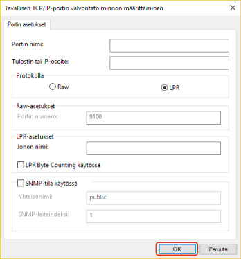 Jos haluat määrittää TCP/IP -vakioportin, napsauta [Määritä portti].