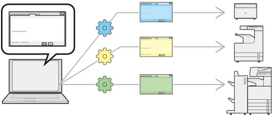 Kutakin tulostinmallia vastaavat kokoonpanoprofiilit on valmisteltu etukäteen. Voit räätälöidä ja käyttää tulostimen toiminnanhallintaa vastaavaa kokoonpanoprofiilia.
