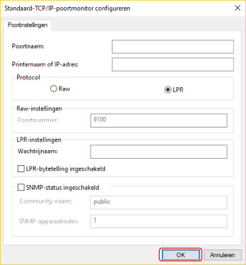 Als u de standaard TCP/IP-poort wenst te configureren, klik dan op [Poort configureren].
